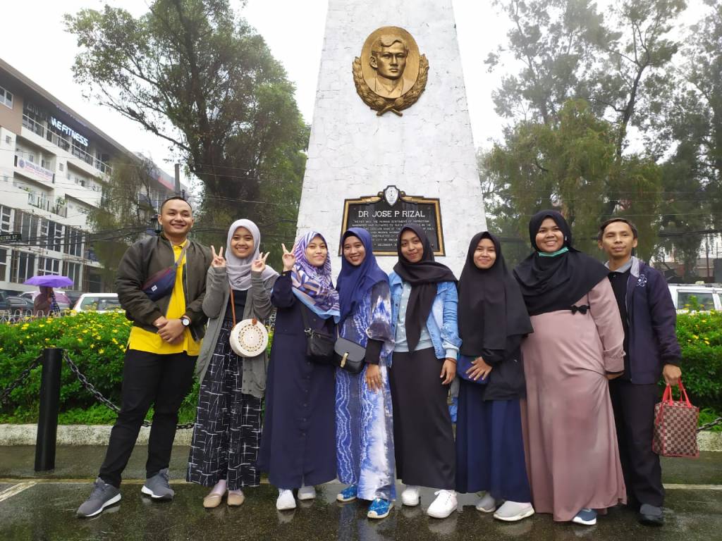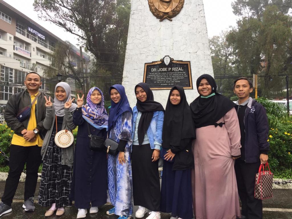 It was so heavy rain outside, and the temperature is almost 18 degree Celsius. Actually, we have some plan today that is visited a mosque in the Baguio. Before we go there, we have to laundry our clothes. Then our buddies, Ate Tin and Jasmine went to our room for took the clothes. Suddenly, at 1 pm, JM comes to our room to pick us up to go to the mosque. So, we should bring and used our umbrella everywhere.