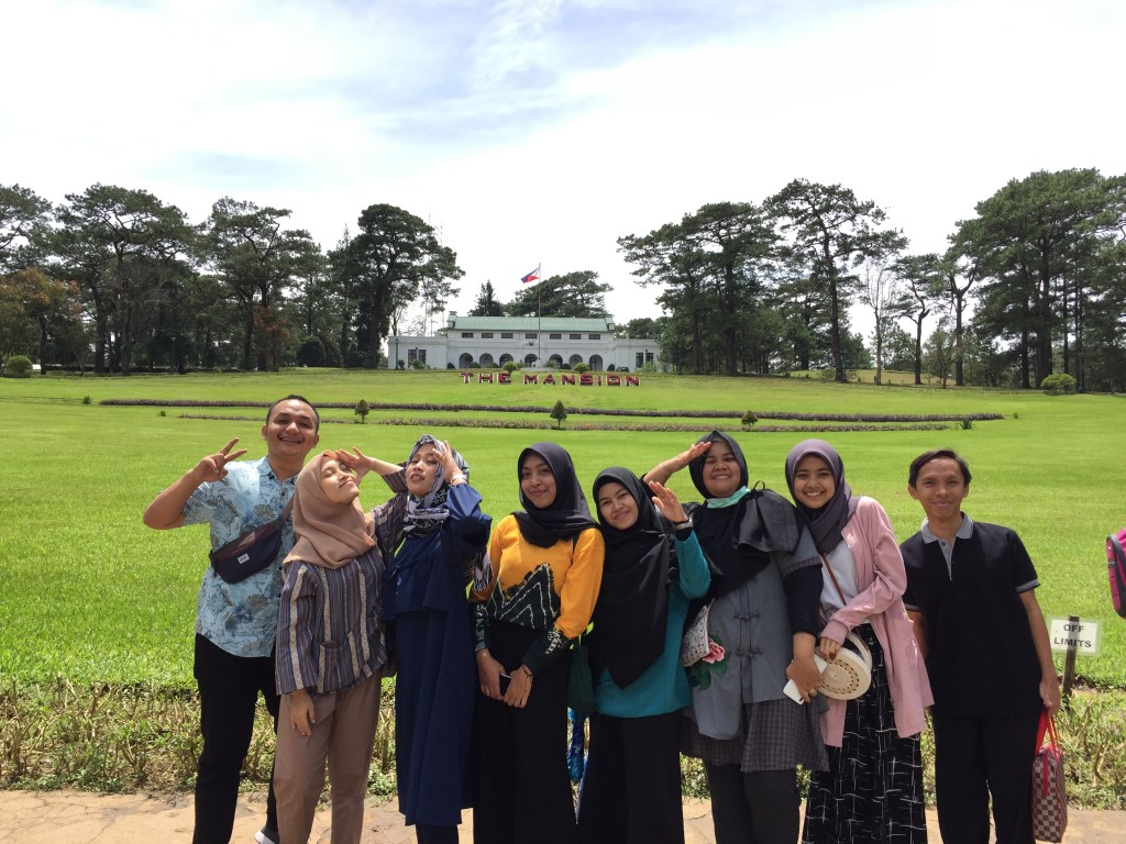 Our first destination is Wright Park. In there, we have to climb so many stairways and make us felt tired. After arrived in up, the place is very beautiful. So many trees and the weather is very good and make us wanna stay in here for a long time. Then, Mr. Armand want us to wear Filipino traditional costume. We have to pay P20 /each person (it’s not expensive) for wear that clothes. Then, we take a picture together with that clothes. After satisfied, we went to The Mansion (President’s House) just cross the road because it is near from Wright Park.